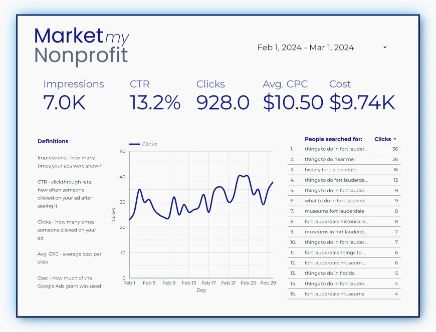 We research the keywords that drive actual foot traffic and donors, not just random clicks.